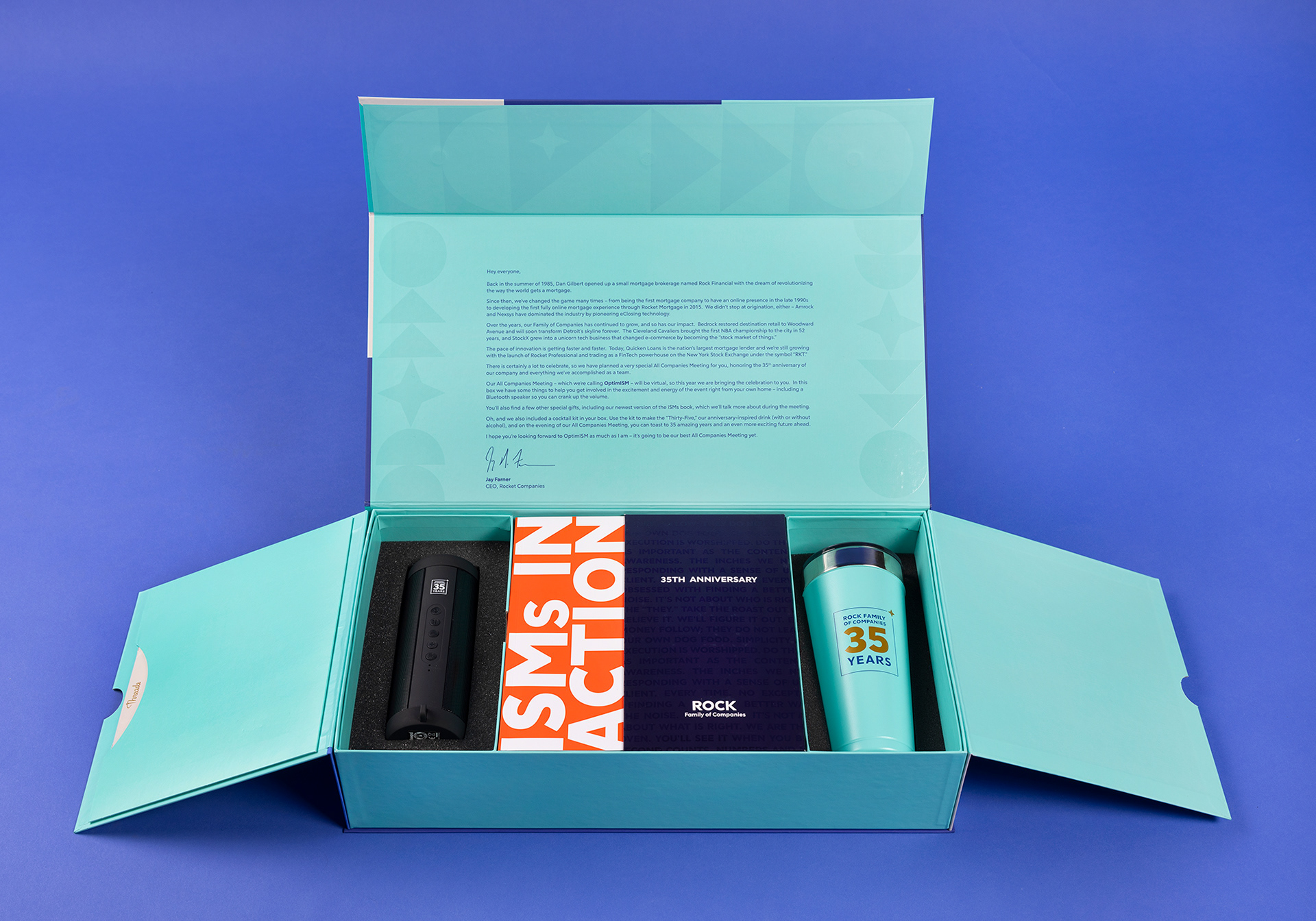 In 2020, the Rock Family of Companies reached a major milestone: 35 years of innovation, growth, and success. Traditionally marked by an energetic, arena-filled All Companies Meeting (ACM), the celebration had to be completely reimagined due to the pandemic. With team members tuning in from home, the challenge was clear—how do we bring the energy, pride, and celebration of our culture to thousands of remote employees?